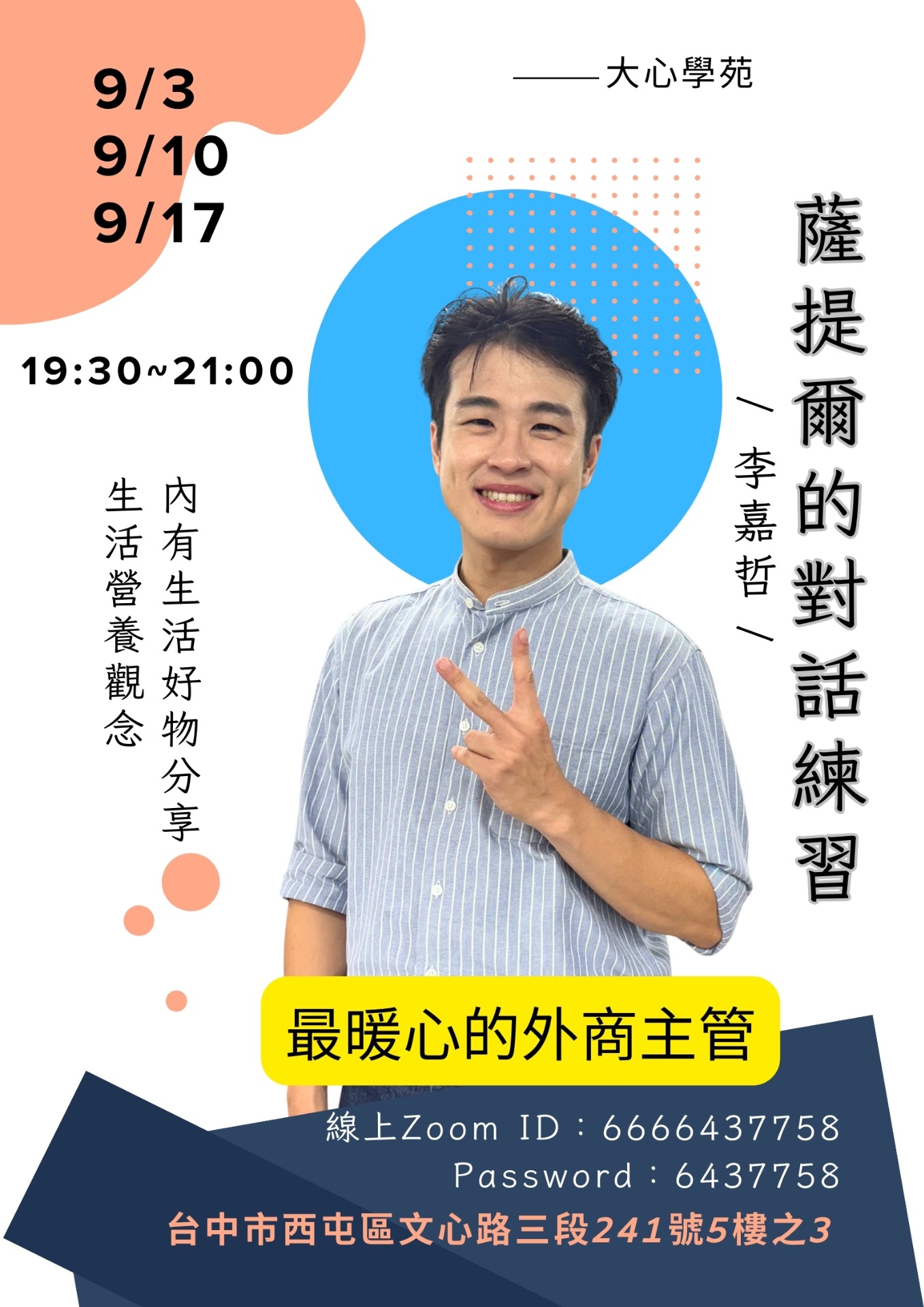 由李嘉哲Gavin親授,3場精華,9/3、9/10、9/17 每週三晚間19:30-21:00,讓你學會活用薩提爾方式對話,深刻改變日常生活和職場關係!
